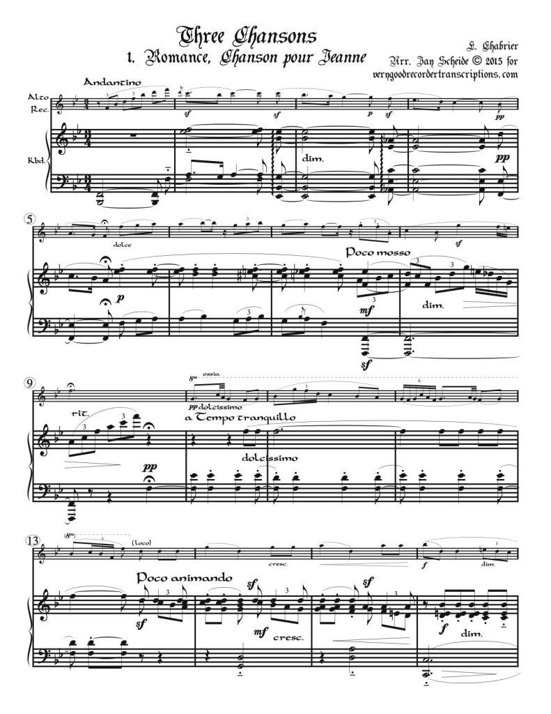No. 1, “Romance, Chanson pour Jeanne", 2, “Les gros dindons” (The hefty turkeys), and 3, “Les cigales” (The cicadas).