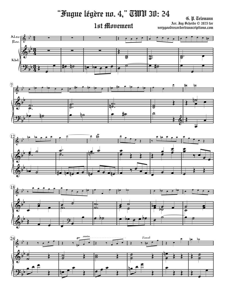 Originally for keyboard solo in d minor, transposed to g in this arrangement. Four movements, a fugue that may remind you of Bach's Art of the Fugue, u.a., and three “Petits jeux”, Allegro, [No tempo], and Vivace.