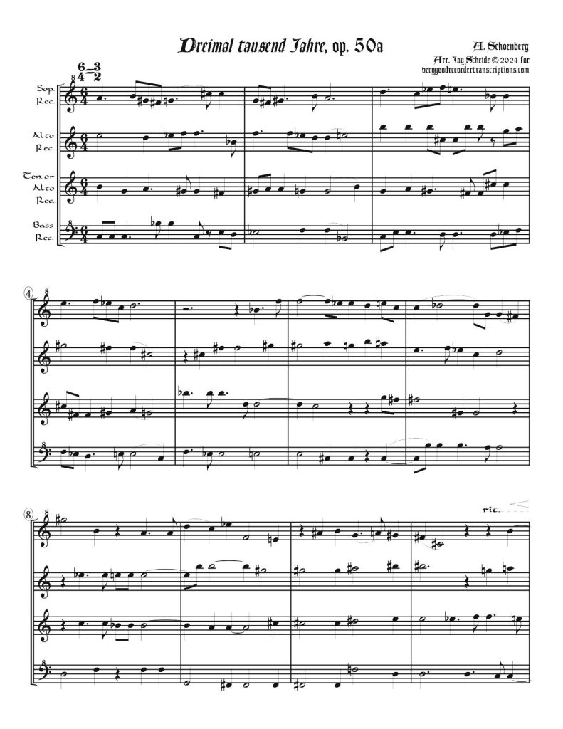Dreimal tausend Jahre, op. 50a , arr. for recorder quartet