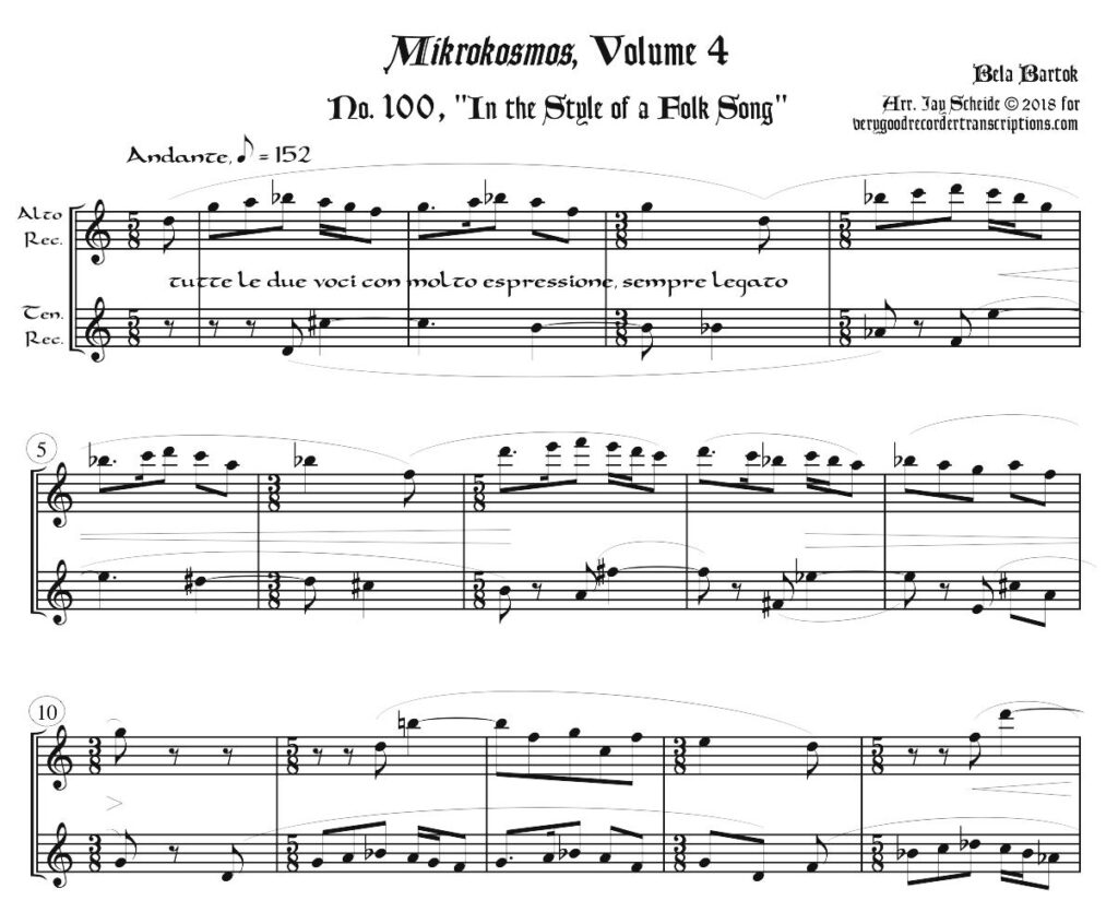 “In the Style of a Folksong”, No. 100 from Mikrokosmos, two versions